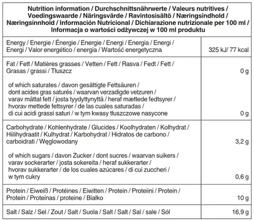 Unsere natürlich gebraute Sojasauce hat folgende Nährwerte pro 100 ml: