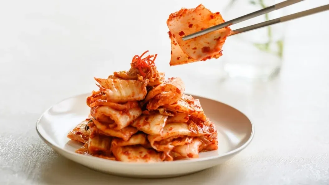 Kimchi – der fermentierte koreanische Kohl – passt hervorragend zu Reis, Nudeln oder Gemüsepfannen und wertet die Gerichte mit seinem würzigen, säuerlichen Geschmack auf.