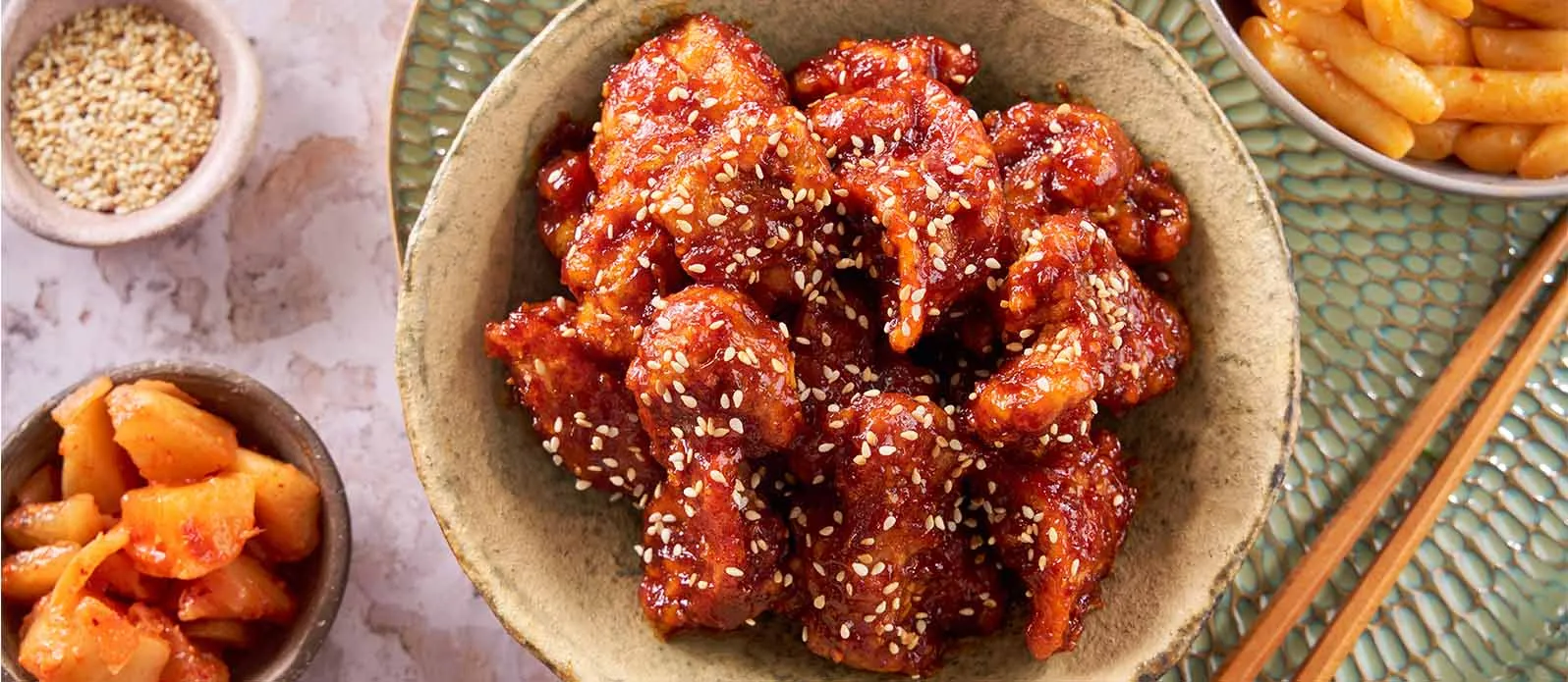 Das Besondere am Korean Fried Chicken ist nicht das Hühnchen selbst, sondern die dazu gereichte Sauce – und die ist so schnell, wie einfach gemacht. Denn mehr als etwas Knoblauch, Ingwer, braunen Zucker, Gochujang und natürlich eine hochwertige Sojasauce, wie die Kikkoman natürlich gebraute Sojasauce braucht es nicht.Mit dieser Basis können Gastronom*innen dann einfach spielen: Nuggets können mit dieser Sauce als Appetizer gereicht werden, ein Geflügel-Hauptgang bekommt den gewissen Kick und andere klassischerweise frittierte Gerichte wie Pommes oder Schnitzel bekommen einen exotischen Touch.