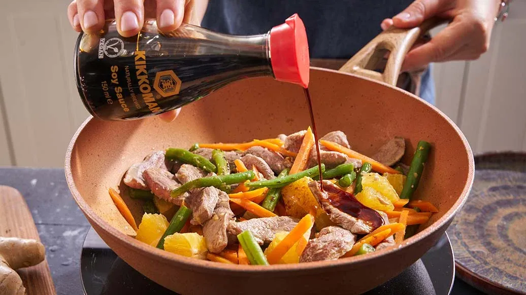 Ein duftendes Wok-Gericht, bei dem zartes Entenfleisch auf die säuerliche Note von Orangen, frischen Ingwer und Kikkoman Sojasauce trifft – eine perfekte Balance aus süßen, herzhaften und würzigen Noten.