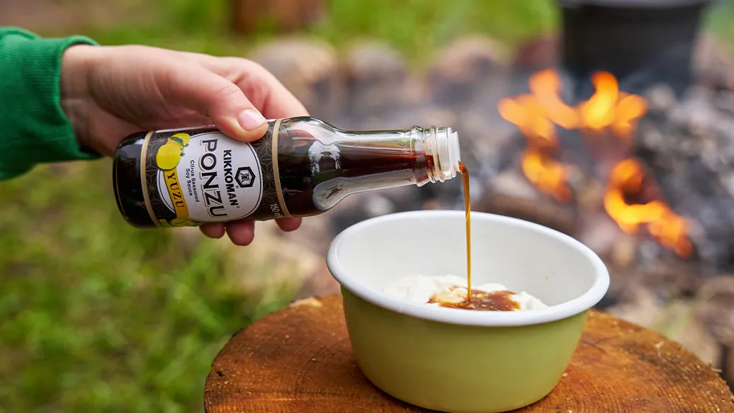 Joghurt mit Kikkoman Ponzu Yuzu vermischen und zum Lamm servieren. Mit Minz- oder Korianderblättchen garnieren.