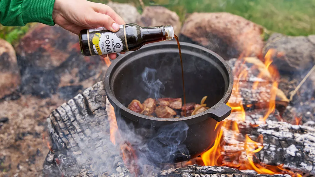 Nach ca. 45 Minuten Kikkoman Ponzu Yuzu in den Topf geben und gut umrühren.