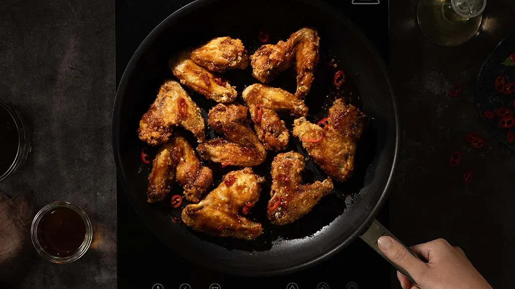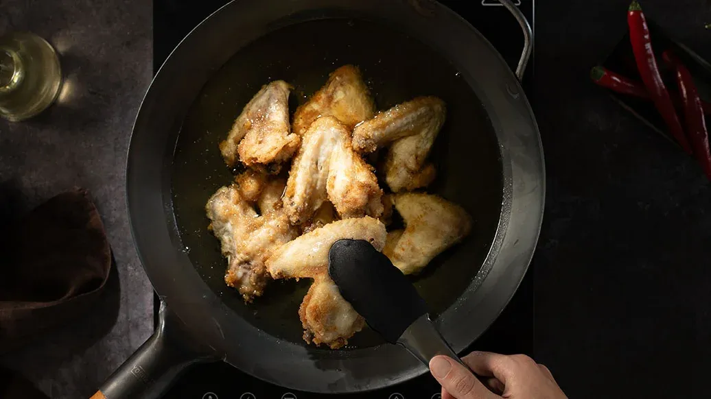 Das Geheimnis für wirklich knuspriges und saftiges koreanisches Brathendl liegt im doppelten Frittieren – genau wie bei Pommes frites. Der zweite Teil des Geheimnisses ist die perfekte Glasur mit Kikkoman Teriyaki BBQ Sauce Korean Style.