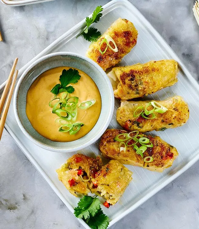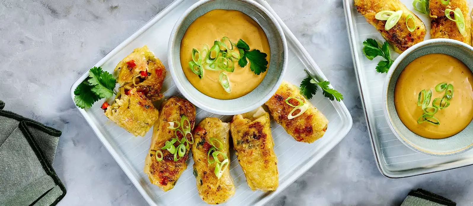 Köstlich, knusprig und besonders schnell zubereitet – diese Reispapier-Teigtaschen mit vegetarischer Füllung und einer raffinierten Umami-Note haben das Zeug zum Lieblingsgericht. Dazu gibt’s einen köstlichen, cremig-scharfen Chili-Dip.