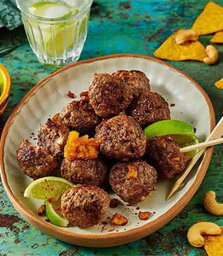 Diese würzigen Fleischbällchen sind so einfach zuzubereiten und eignen sich hervorragend als Snack oder für Partys. Servieren Sie dazu ein herzhaftes fruchtiges Marillen-Chutney.
