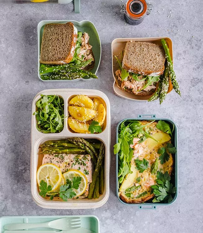 Mittagsgerichte mit Lachs und Kartoffeln